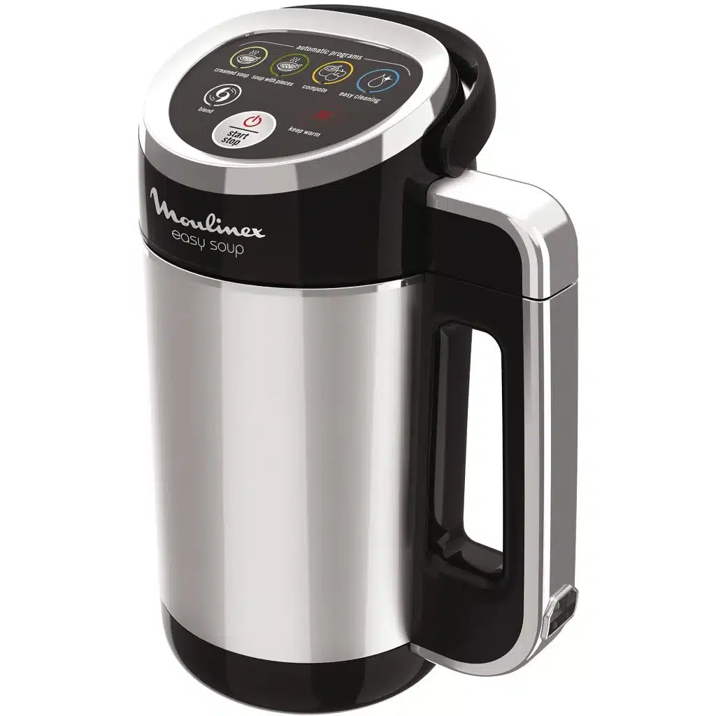 Il n’est pas évident de choisir un blender chauffant lorsque plusieurs marques et plusieurs modèles s’offrent à vous sur internet ou dans les catalogues. Par contre, certains appareils comme le Morphy Richards Smart Control M501020EE sont très prisés par le grand public en raison de leur bon rapport qualité-prix. Offrant 8 programmes différents, ce cuiseur en milieu de gamme connaît un énorme succès car il permet de mouliner de gros morceaux et de réchauffer les préparations, ce qui est idéal pour les amoureux de soupes. Son bol amovible facilite son nettoyage, d’autant plus qu’il dispose de la fonction pré-nettoyage. La contenance du bol est de 1.6 litre, mais vous pouvez aussi l’utiliser pour concocter une ration de 800 millilitres. De plus, le temps de préparation n’est que de 20 à 30 minutes suivant les plats, et les préparations peuvent être maintenues au chaud pendant une trentaine de minutes car le bol est en inox. Toutefois, la température de chauffe peut être assez élevée en début de préparation. Une vigilance est donc de mise au moment d’ajouter les ingrédients.
